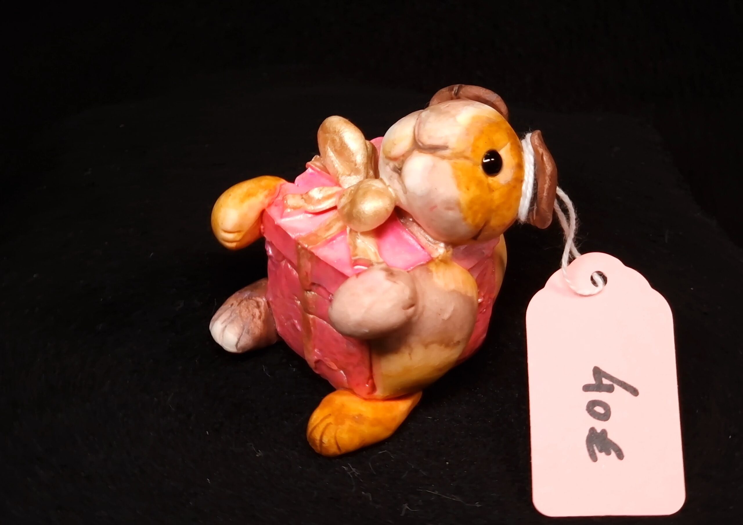 Handmodelliertes Einzelstück – Tierfigur mit Päckchen